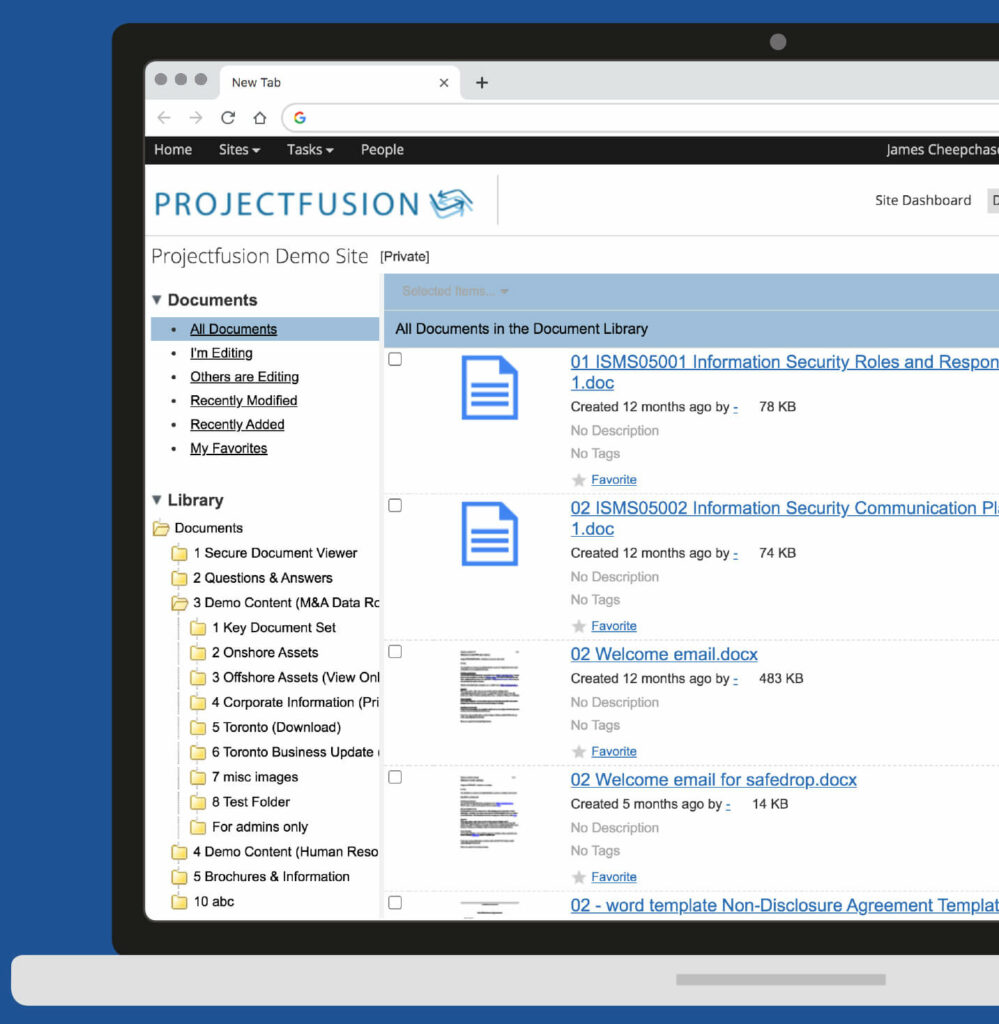 “Many thanks for your help getting our data room up and running. I won’t hesitate to recommend Projectfusion.”